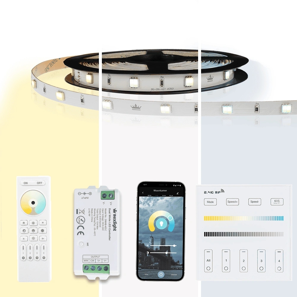 24 meter dual white led strip – basic – complete set met deze complete dual white led strip set