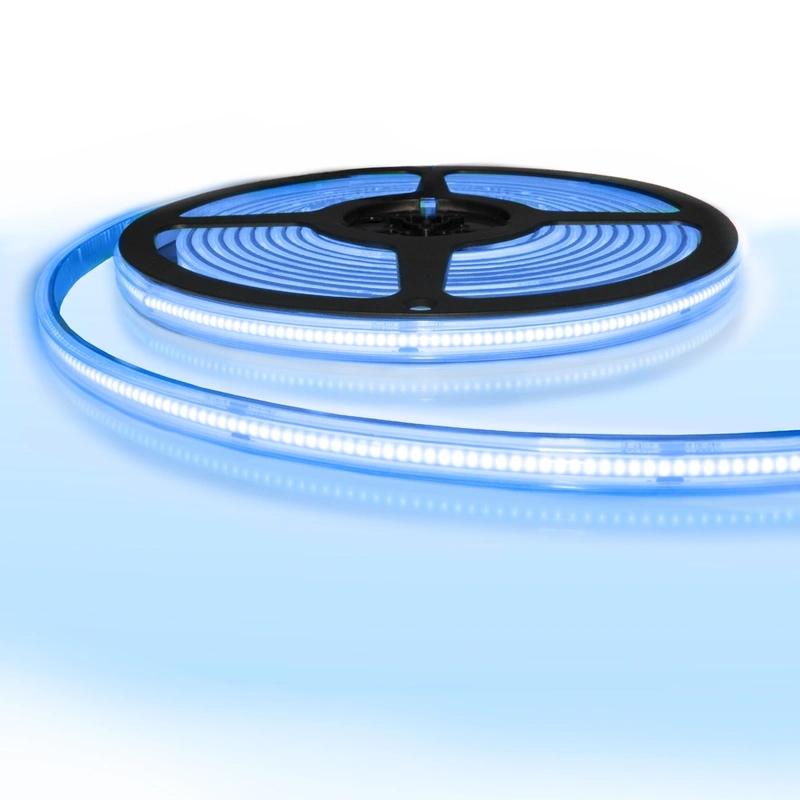 5 meter gekleurde cob led strip ip65/67 24v – blauwe kleur – 384 leds p/m
