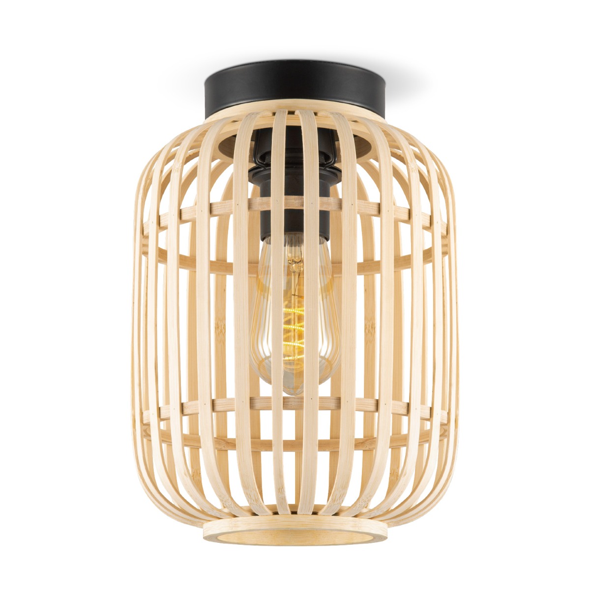 Home Sweet Home Deze cilindervormige plafondlamp is geïnspireerd op de bohemian stijl en heeft een beige bamboe kap die een natuurlijke, warme sfeer toevoegt. Het zachte licht dat door de bamboekap schijnt, creëert een knusse ruimte en maakt je interieur gezelliger en uitnodigender.