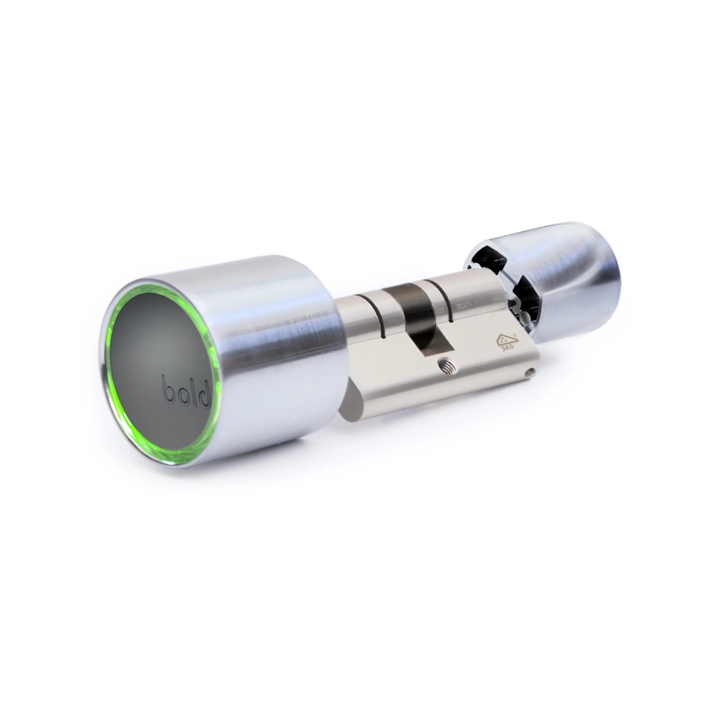 Met het Bold Smart Lock SX-45 opent u uw deur zonder sleutels, alleen met uw smartphone of een pincode. Dit slimme slot maakt uw leven makkelijker en is veiliger dan gewone sloten. Kenmerken Bold SX-45 Smart Lock Geen sleutels nodig: Open uw deur met de Bold-app op uw smartphone of met een pincode.Lange batterijduur: De batterij werkt meer dan 2 jaar of 20.000 keer openen en sluiten.Zeer veilig: Dit slot heeft een SKG*** certificaat en gebruikt sterke beveiliging.Past op elke cilinder: U kunt dit slot zelf makkelijk op elke deur met een standaardcilinder zetten.Opent vanzelf: Het slot herkent u en gaat open zodra u in de buurt bent, zonder dat u iets hoeft te doen.Ook zonder smartphone: Kom binnen met een handige sleutelhanger of een speciale code als u geen telefoon bij u heeft. Het Bold Smart Lock SX33 is makkelijk te plaatsen en u heeft er geen technische kennis voor nodig. Het past op alle normale deuren met een eurocilinder. De afmetingen zorgen ervoor dat het slot goed past (binnenmaat tot 45 mm en buitenmaat van 50 tot 65 mm). Als u in de buurt van uw deur komt met uw smartphone, maakt het slot automatisch contact en gaat het open als u aan de knop draait. Dit werkt heel handig en snel. Als u geen telefoon bij u heeft, kunt u altijd nog met een pincode of de Bold Clicker naar binnen. Dit slot is erg veilig. Het heeft een hoog veiligheidscertificaat en is goed beschermd tegen inbraakpogingen zoals boren en trekken. Ook uw persoonlijke gegevens zijn veilig door sterke versleuteling. Het Bold Smart Lock SX33 is meer dan een slot. Het is een modern beveiligingssysteem dat makkelijk te gebruiken is en uw deur zeer goed beveiligt. Verander uw voordeur in een slimme ingang die comfort en veiligheid biedt.