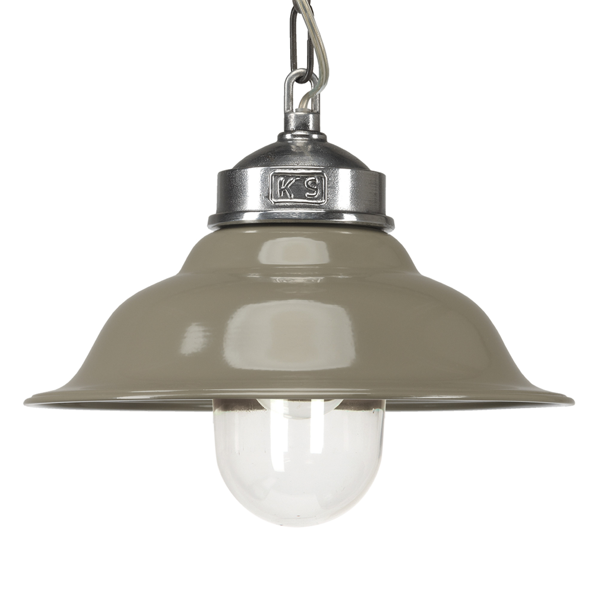 De Porto Fino is een stijlvolle vintage hanglamp in de unieke retro & vintage kleur Taupe/Bruin. Deze hanglamp heeft een diameter van 30 cm is vervaardigd uit een aluminium kap en echt glazen stolp. De lamp wordt standaard geleverd met een ketting van 50cm en een aluminium plafondplaat (samen ±63cm). De lamp is ontworpen met een een porseleinen fitting.