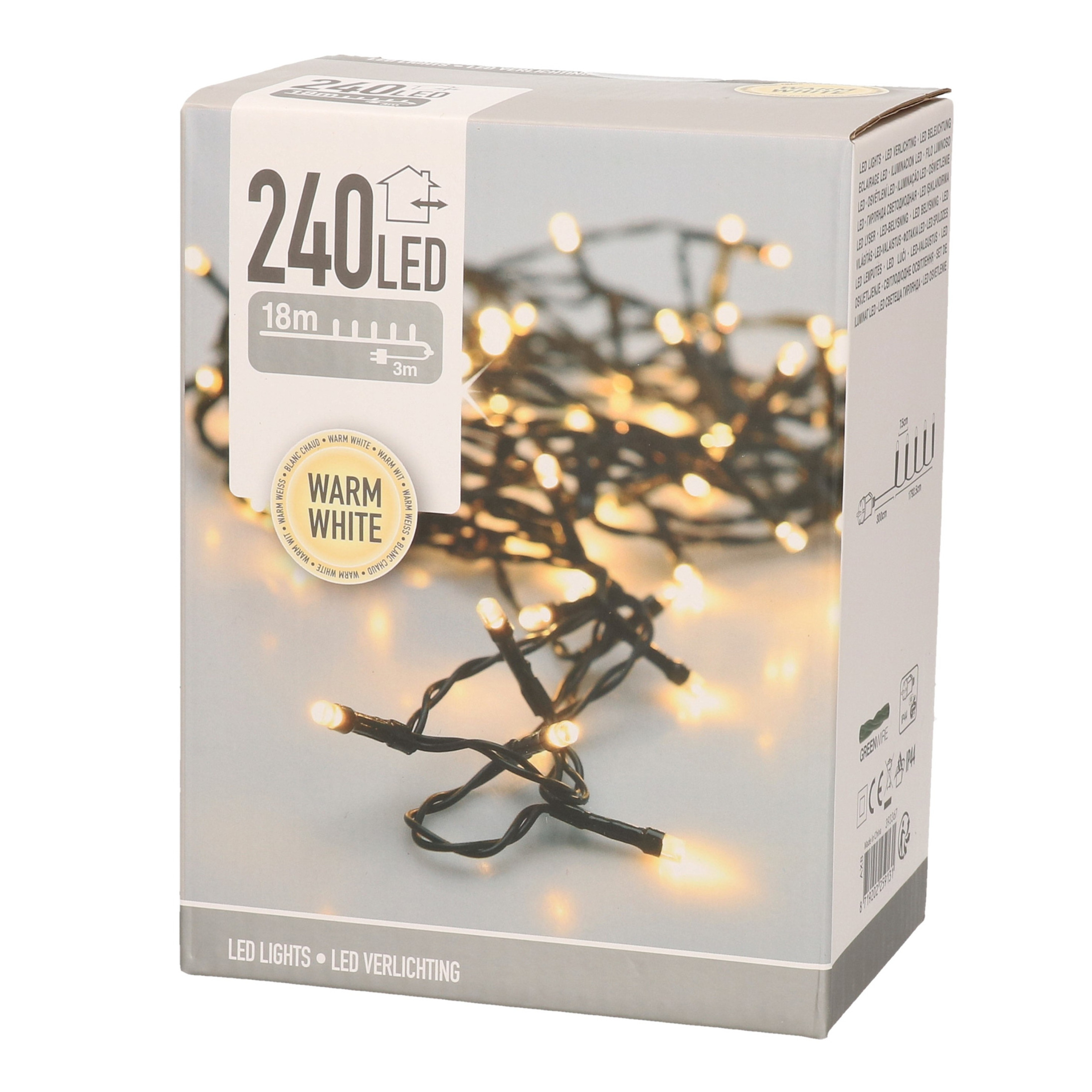 Deze LED-kerstverlichting heeft 240 warm witte lampjes en een totaal snoerlengte van 21 meter. Het lichtsnoer is geschikt voor zowel binnen- als buitentoepassingen en heeft een stekkersnoer van 3 meter. Ideaal voor het verlichten van grotere ruimtes, zoals kerstbomen, gevels, of andere feestelijke decoraties. Het warme witte licht zorgt voor een sfeervolle en feestelijke uitstraling.