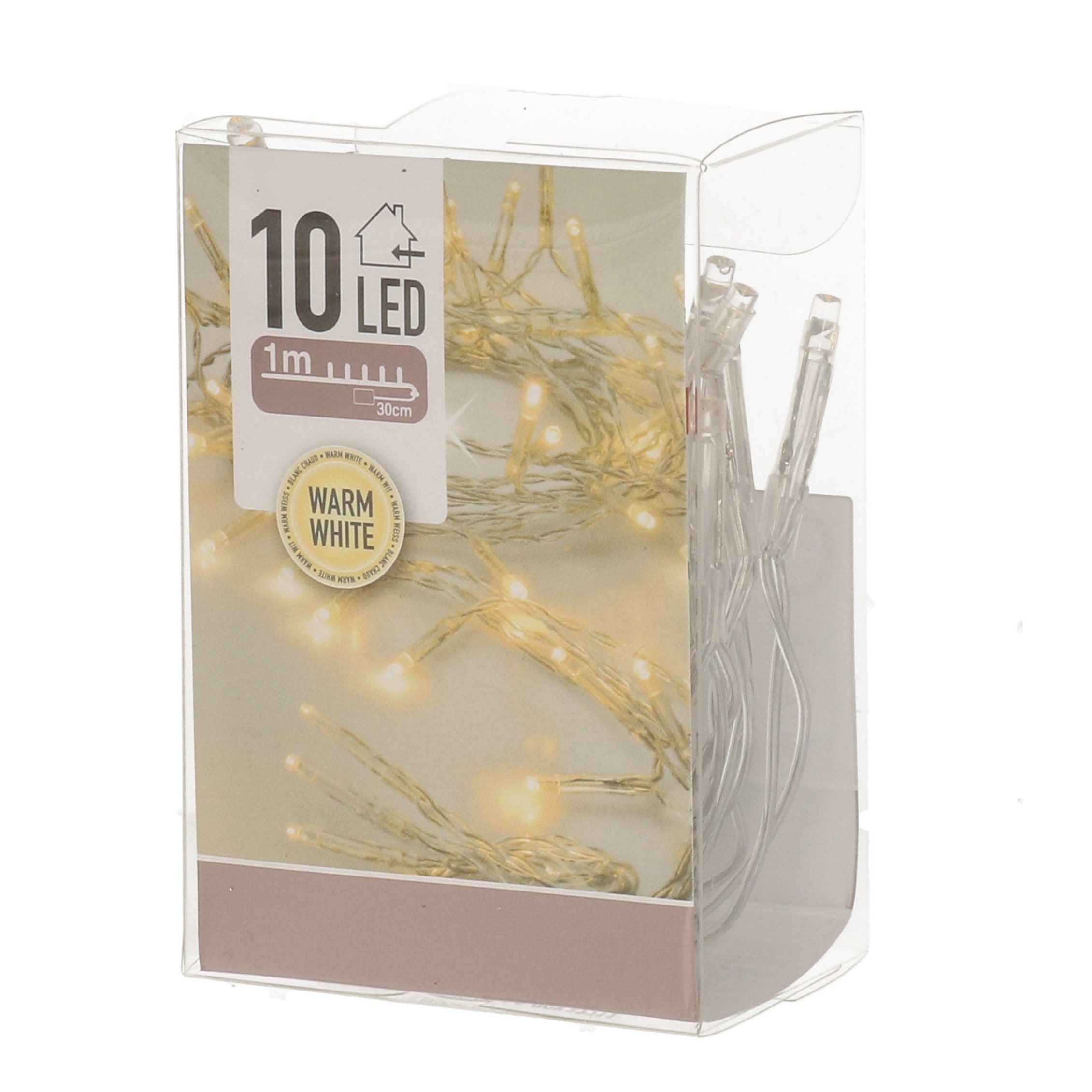 Kerstverlichting lichtsnoer met 10 LED-lampjes. Dit betoverende kerst LED lichtsnoer voegt een feestelijke gloed toe aan je interieur. Met een totale lengte van 130 cm, inclusief een aanloopsnoer van 30 cm, en 10 LED-lampjes verdeeld over 1 meter, is dit snoer perfect voor het verfraaien van je kerstboom, vensterbanken, tafeldecoraties en meer.