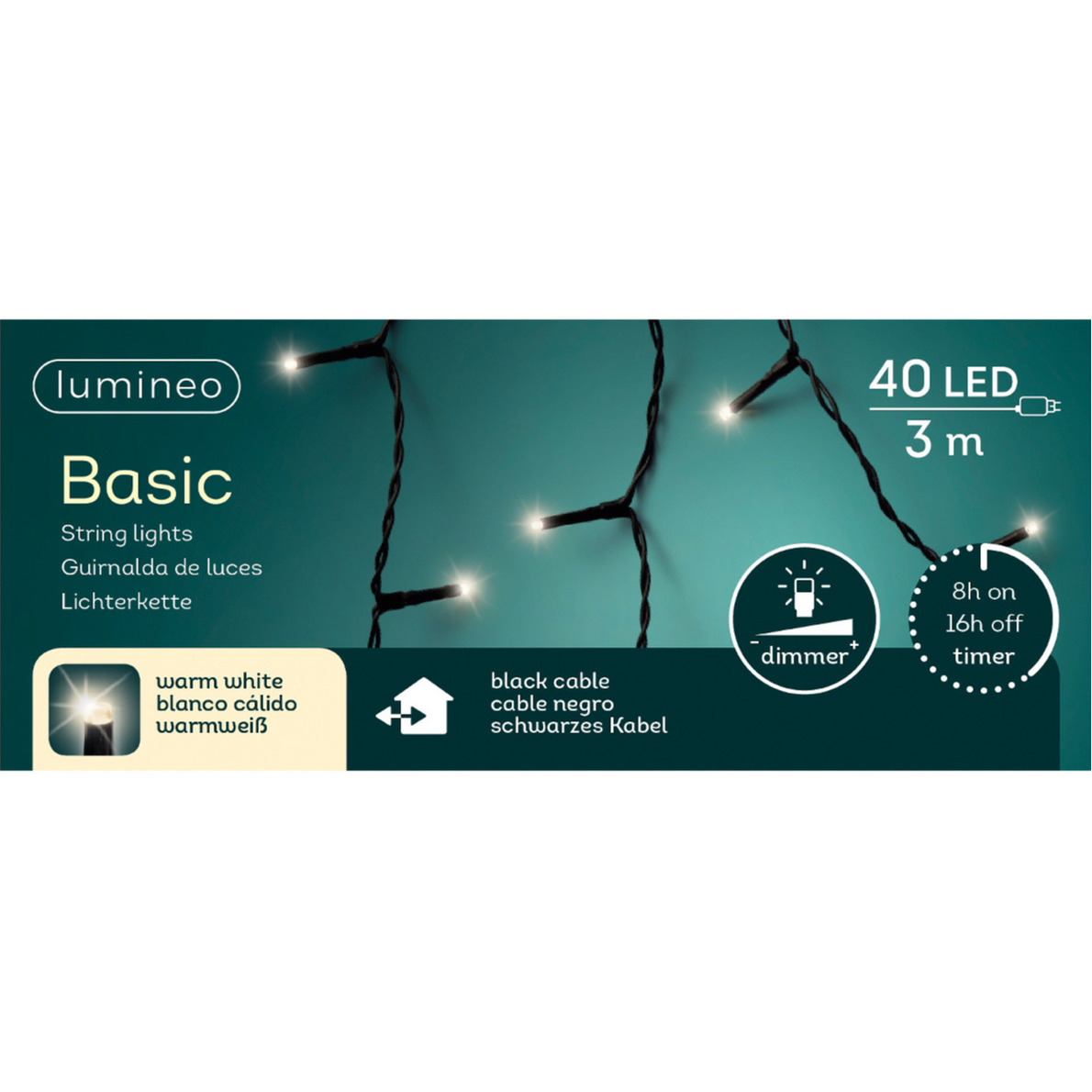 Deze LED buitenverlichting met warm witte lampjes voegt een sfeervolle gloed toe aan je buitenruimte. Het lichtsnoer is 6 meter lang en bevat 40 LED lampjes, verdeeld over een afstand van ongeveer 7,5 cm tussen elk lampje. Het zwart gekleurde snoer heeft een aanloopsnoer van 3 meter. De afstand tussen het eerste en laatste lampje is circa 3 meter. Deze verlichting wordt geleverd met een IP44 trafo en heeft een CE-Kema keurmerk voor de trafo, wat garant staat voor veiligheid en kwaliteit. Let op: de lampen zijn niet vervangbaar. Geschikt voor buitengebruik.