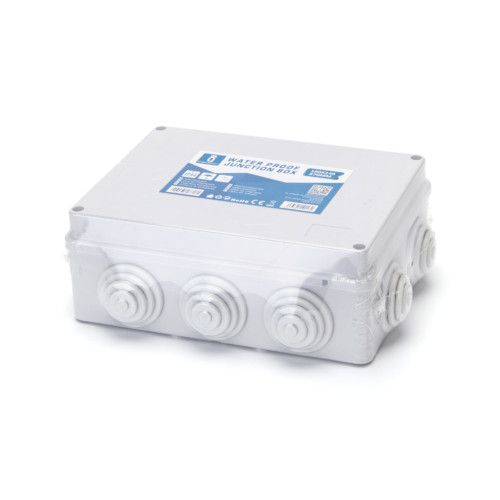 Waterbestendige Lasdoos met 10 Flexibele IngangenOntworpen voor zowel binnen- als buitengebruik, biedt deze waterbestendige kunststof lasdoos met 10 flexibele ingangen een uitstekende oplossing voor het verbinden en aansluiten van kabels. Met een IP44 classificatie is deze lasdoos ideaal wanneer je een transformator voor buitenverlichting installeert, omdat het de trafo beschermt tegen vocht en schade.Gemaakt van duurzaam en slagvast ABS kunststof, is deze lasdoos bestand tegen temperaturen van -40°C tot +85°C, waardoor het geschikt is voor diverse toepassingen.Bij de lasdoos worden 10 flexibele wartels geleverd.De afmetingen van deze waterbestendige lasdoos zijn L190 x B140 x H70 mm.Specificaties waterbestendige lasdoos MerkAigostarAfmetingenL190 x B140 x H70 mmBeschermingsgraadIP44CertificatenCE, RoHSToepassingenUitermate geschikt om kabels met elkaar te verbinden voor zowel binnen- als buiten gebruikExtra informatieWordt geleverd met 10 flexibele wartelsGarantie2 jaar