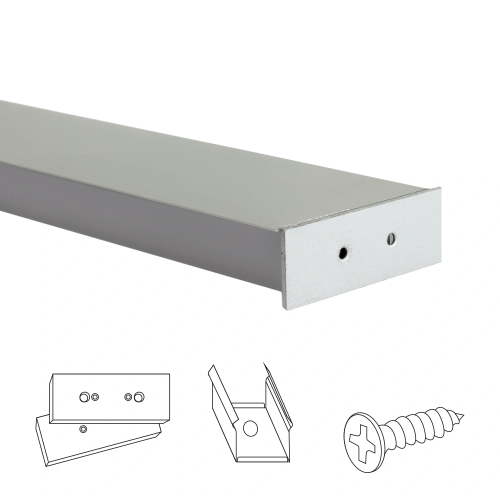 Led profiel 1 meter up-down met afdekkap – geschikt voor 2 ledstrips een up downlight led profiel, dat is deze aluminium led strip profiel. Met dit aluminium led strip profiel met afdekkap schijnt het licht 2 kanten op. Hiermee kunt u uw led strips op bijzondere wijze toepassen. Op allerlei ondergronden te monteren en erg vriendelijk in gebruik. Kenmerken up-down led profiel voor 2 ledstrips verlichting aan twee zijdes aluminium led profiel platte diffuse afdekkap lengte 2 meter ledstrip max. 12 mm dik geschikt voor 2 strips, aan beide zijdes 1 dit up en downlight led profiel is ontzettend veelzijdig. Er kan namelijk aan beide kanten van het profiel een led strip bevestigd worden. Het resultaat is 2 led strips die aan elke kant naar buiten verlichten. De montage is zeer gebruiksvriendelijk te noemen door middel van de meegeleverde schroefjes en het schuifklemmetje. Dit profiel is op allerlei plekken te gebruiken. Zo kunt u hem horizontaal op de muur monteren, maar ook verticaal. U kunt bovendien denken aan een plafondmontage als symbolische afscheiding tussen twee ruimtes. Ook wij laten ons steeds weer verrassen door nieuwe creatieve toepassingen van klanten.