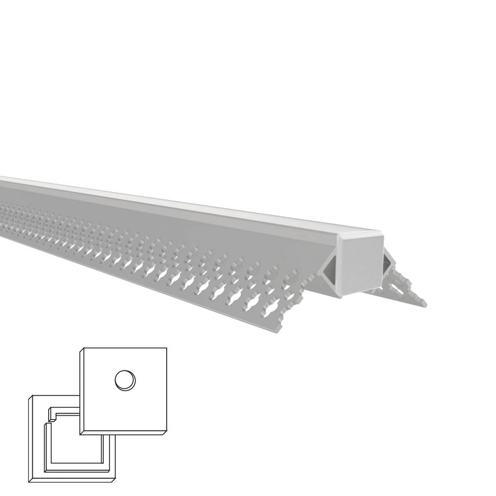 Led stucprofiel buitenhoek – 2 meter – smalle variant voor de buitenhoek van een muur met stucwerk is dit ledprofiel geschikt. Werk het profiel met de led strip onzichtbaar weg in de hoek van wand voor een prachtige afwerking en een strakke lichtlijn. Geschikt voor ledstrips tot 2 meter lengte. Kenmerken buitenhoek led stucprofiel aluminium stucprofielled binnenhoek profielmet frosted afdekkapvoor 2 meter ledstripledstrip max. 12 mm breed led strips tot 12 mm breed kunnen met dit led inbouw profiel onzichtbaar worden weggewerkt in een wand met stucwerk. Aan beide kanten van dit led profiel zitten geperforeerde vleugels. Dit betreft een buitenhoek profiel, geschikt dus om een led profiel in een wand of muur met buitenhoek te verwerken. Zo creëert u met de led strip in het led profiel een strakke lichtlijn die onzichtbaar weggewerkt is in uw muur of wand voor een schitterend en sfeervol resultaat.