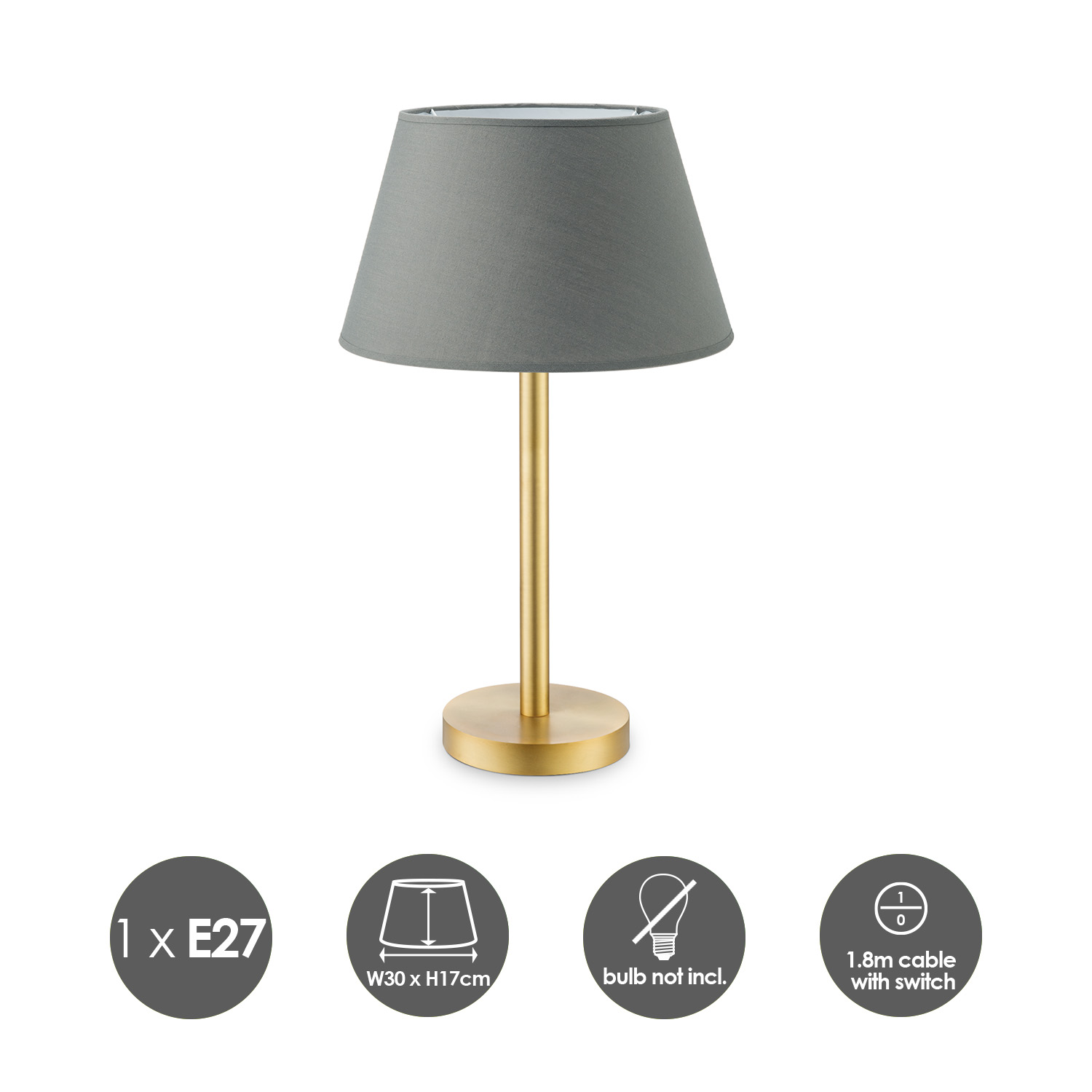 Ronde tafellamp Stick van Home sweet home maakt indruk met zijn warme messing stalen looks. Met zijn tijdloos design past hij uitstekend bij verschillende woonstijlen. De stevige, ronde lampvoet ontvang je samen met een elegante, taps lampenkap Largo. Samen met deze ronde, donkergrijze lampenkap is Stick op en top ideaal op jouw nachtkastje of bijzetkast!
