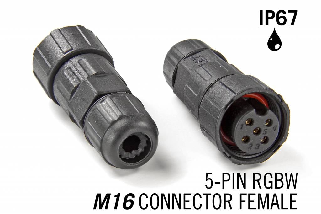 M16 5 pin IP67 female waterdichte kabel connector.Voor het gebruik bij RGBW led strips Voor het gebruik bij buitenverlichtingLet op dit is geen set van 2 stekkers(zie de extra tekst onder aan de pagina)