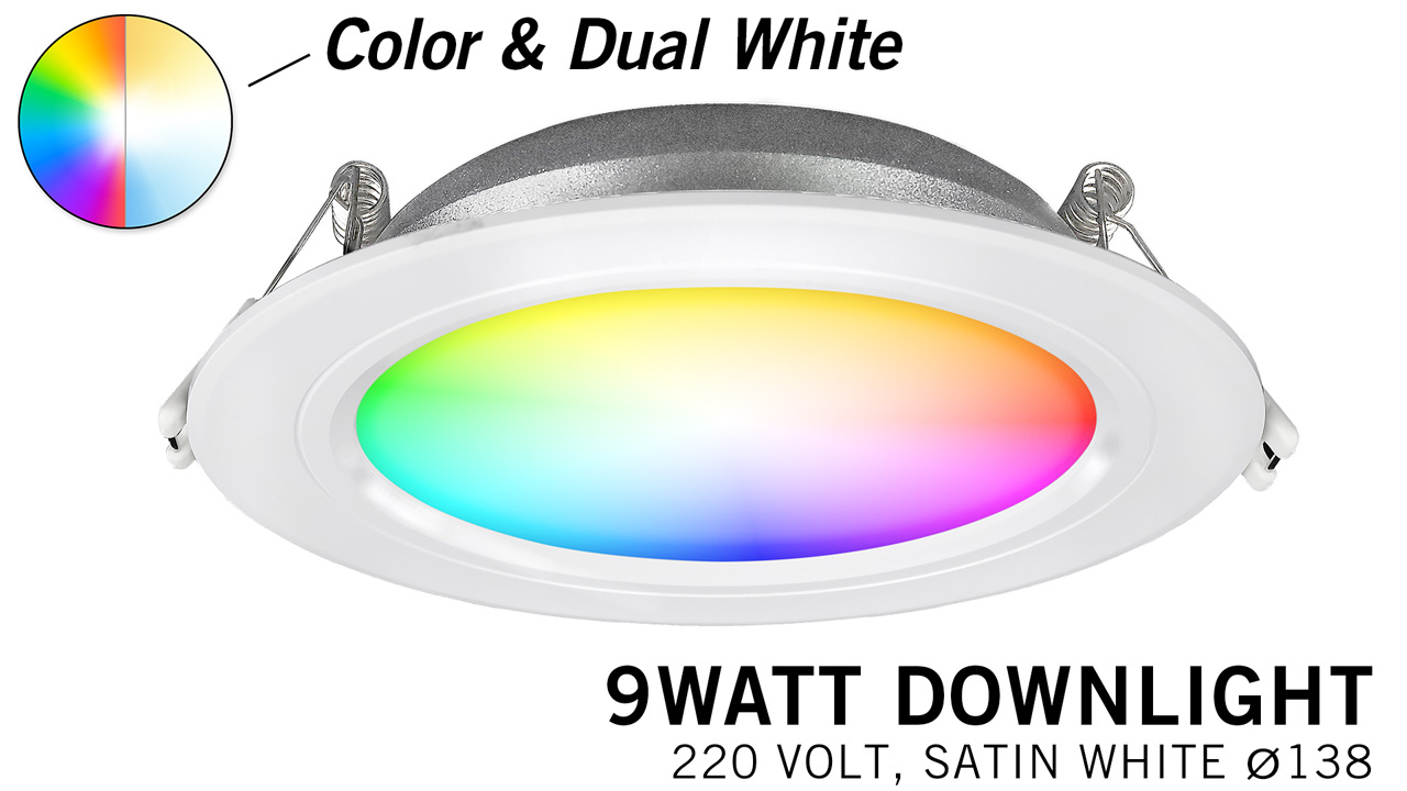 Mi-Light Kleurenspot met de allernieuwste standaard `RGB kleur + Dual White` LED 9W inbouwspots: RGB kleurregeling, kleurverzadigingsregeling en daarbij ook Dual White regeling van warm wit tot koud daglicht. Losse spot. Bedienen via afstandsbediening, wa