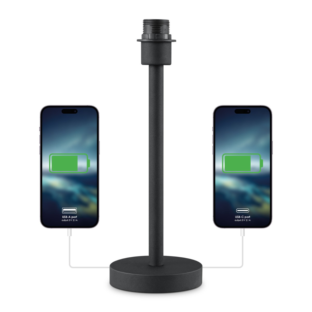 Moderne Tafellamp Voet in Zwart – 14 x 14 x 39 cm – Inclusief USB A+C poort – Klassieke nachtlampjes voor de slaapkamer – voor Lampenkap met max.35cm – E27 Bedlamp – Lichtbron niet inbegrepen