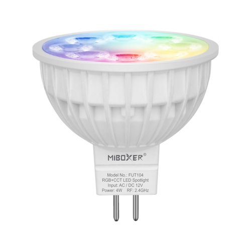 Slimme MiBoxer LED GU5.3 Ledspot 4 Watt De GU5.3 Ledspot die u hier ziet kan elke gewenste kleur en lichtsterkte geven. Met behulp van een Wifi Controller en Smartphone of RF afstandsbediening (niet meegeleverd) kunt u elke kleurtint kiezen tussen 2700 en 6500K. Tevens is de lamp dimbaar. Ook kunt u uit allerlei verschilende effecten kiezen, zoals bijvoorbeeld Stroboscoop of Fade Effect. U vindt alle MiBoxer Wificontrollers op de site, evenals alle MiBoxer Afstandsbedieningen. Het vermogen van deze slimme GU5.3 Ledspot is 4 Watt, waarmee het een zeer zuinige ledlamp is waarmee u eenvoudig veel op uw energierekening kunt beparen. Specificaties slimme LED GU5.3 ledspot 4 Watt – MiBoxer Merk MiBoxer/Milight Verbruik (Watt) 4 Fitting GU5.3 Ingangsspanning (Volt) 12VAC/DC Protocol WiFi Lichtsterkte 280 Lumen Lichtopbrengst (efficiëntie) 70 Lumen per…