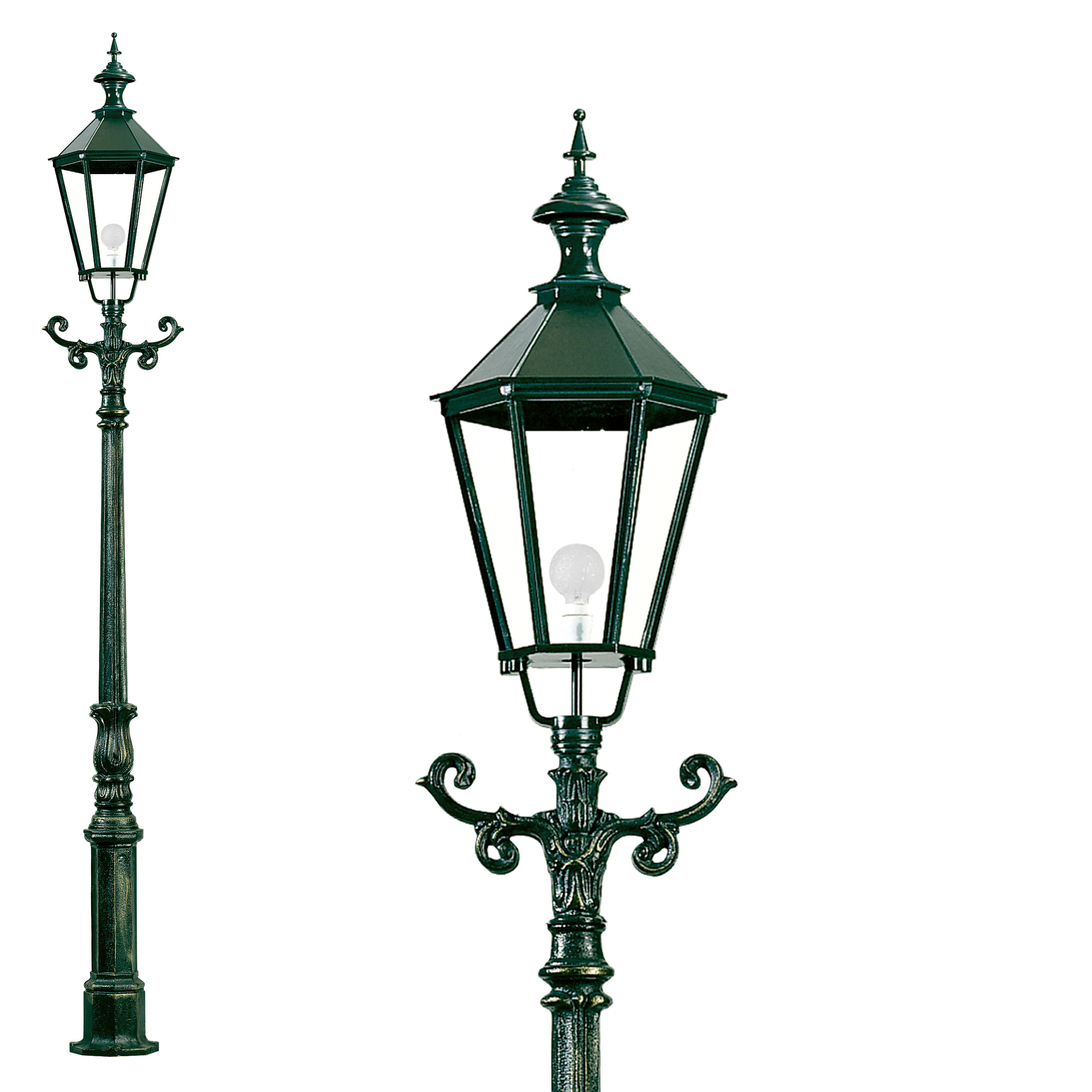 Dit betreft een tweede kans artikel, de lantaarns zijn gebruikt in een overdekte filmset locatie en kunnen lichte gebruikerssporen hebben. De prijs betreft een afhaal prijs, uiteraard is het ook mogelijk om de lantaarns te verzenden. Gezien de omvang en het gewicht rekenen wij hier een prijs voor van €150,-Exclusieve buitenverlichting, deze stijlvolle klassieke tuinlamp is vervaardigd van Gietijzer en wordt geleverd met prachtige oudhollandse lantaarnkap van aluminium. De lantaarnkap beschikt over een E27 lamphouder en is hierdoor dus ook geschikt voor LED. Deze gietijzeren lantaarnpaal wordt geleverd in de grondverf. Bij de lantaarnpaal krijg je een pot dekkende verf geleverd om op locatie de lantaarnpaal de gewenste kleur te geven (groen of zwart). Al onze exclusieve buitenverlichting staat gepresenteerd in onze showroom in Zwaagdijk-Oost. Je bent uiteraard van harte welkom om eens een kijkje te nemen. De buitenverlichting wordt direct uit voorraad geleverd.