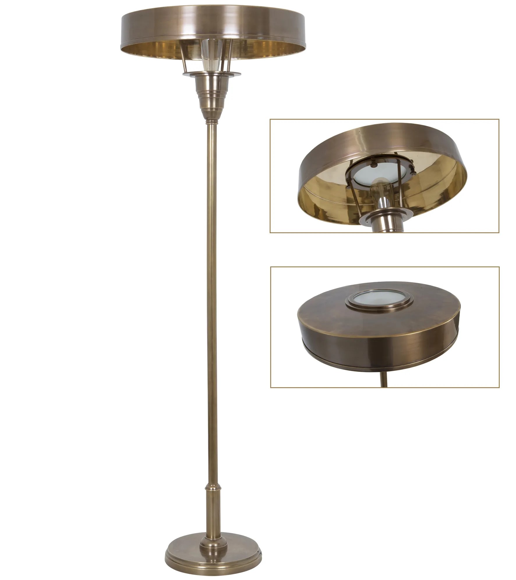 De Auriol vloerlamp in antiek messing is een stijlvolle staande lamp die volledig is vervaardigd uit massief messing. De verfijnde afwerking en het ambachtelijke ontwerp geven deze lamp een luxueuze uitstraling die perfect past binnen zowel industriële als klassieke interieurs. Het warme messingkleurige oppervlak benadrukt het robuuste karakter van het ontwerp en zorgt voor een sfeervolle lichtbeleving. Dankzij de E27 fitting is de lamp geschikt voor een energiezuinige LED lichtbron, waarmee je eenvoudig de gewenste lichttemperatuur kiest. De Auriol is ontworpen met oog voor detail en duurzaamheid. Het gebruik van messing garandeert een lange levensduur en een blijvend hoogwaardige uitstraling, zelfs bij intensief gebruik. Zoek je een vloerlamp van messing met een industriële uitstraling, een klassieke staande lamp in antiek messing of een hoogwaardige designlamp voor je interieur? Dan is de Auriol vloerlamp een elegante en tijdloze keuze. Verkrijgbaar bij Nostalux en direct uit voorraad leverbaar.